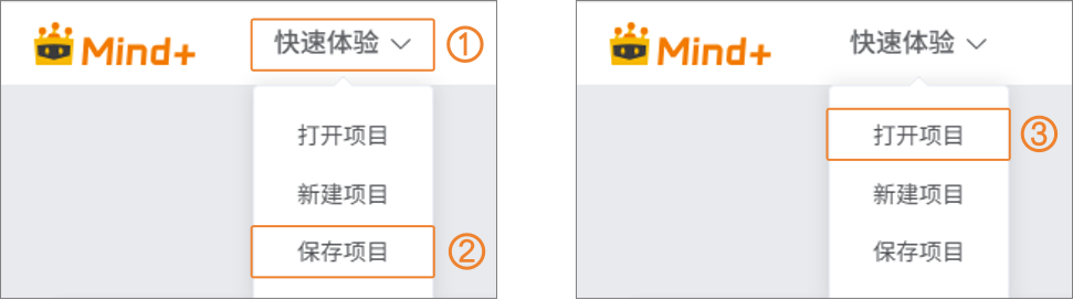 - 后续可通过 “快速体验” → “打开项目”,重新打开已保存的项目文件。