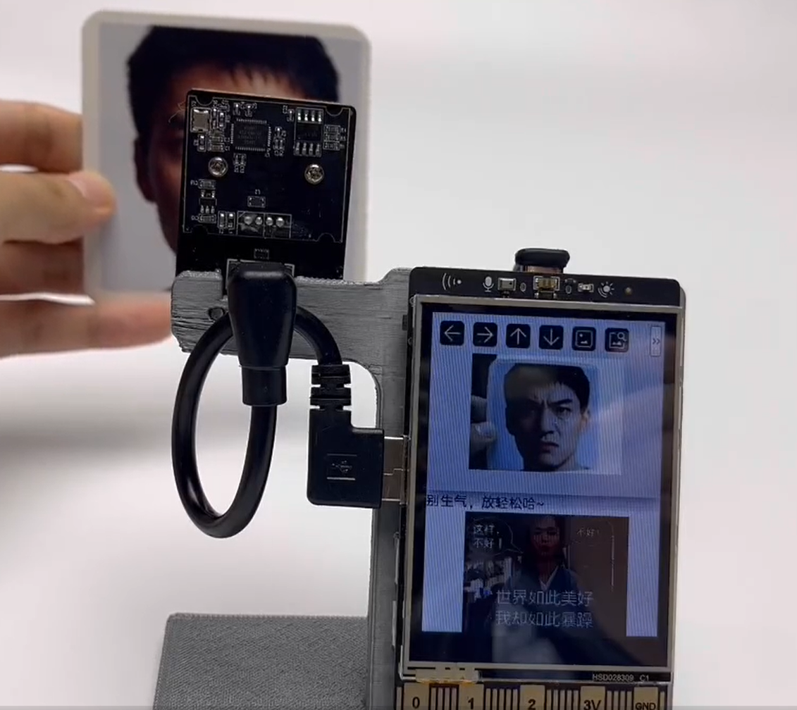 - 当识别到开心表情时,在M10屏幕上显示对应的开心图片以与对应的提示文字;当识别到愤怒表情时,在M10屏幕上显示愤怒的表情与对应的提示文字。