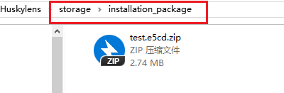 - 将生成的模型zip文件复制到Huskylens 的 硬盘的\storage\installation_package目录下。