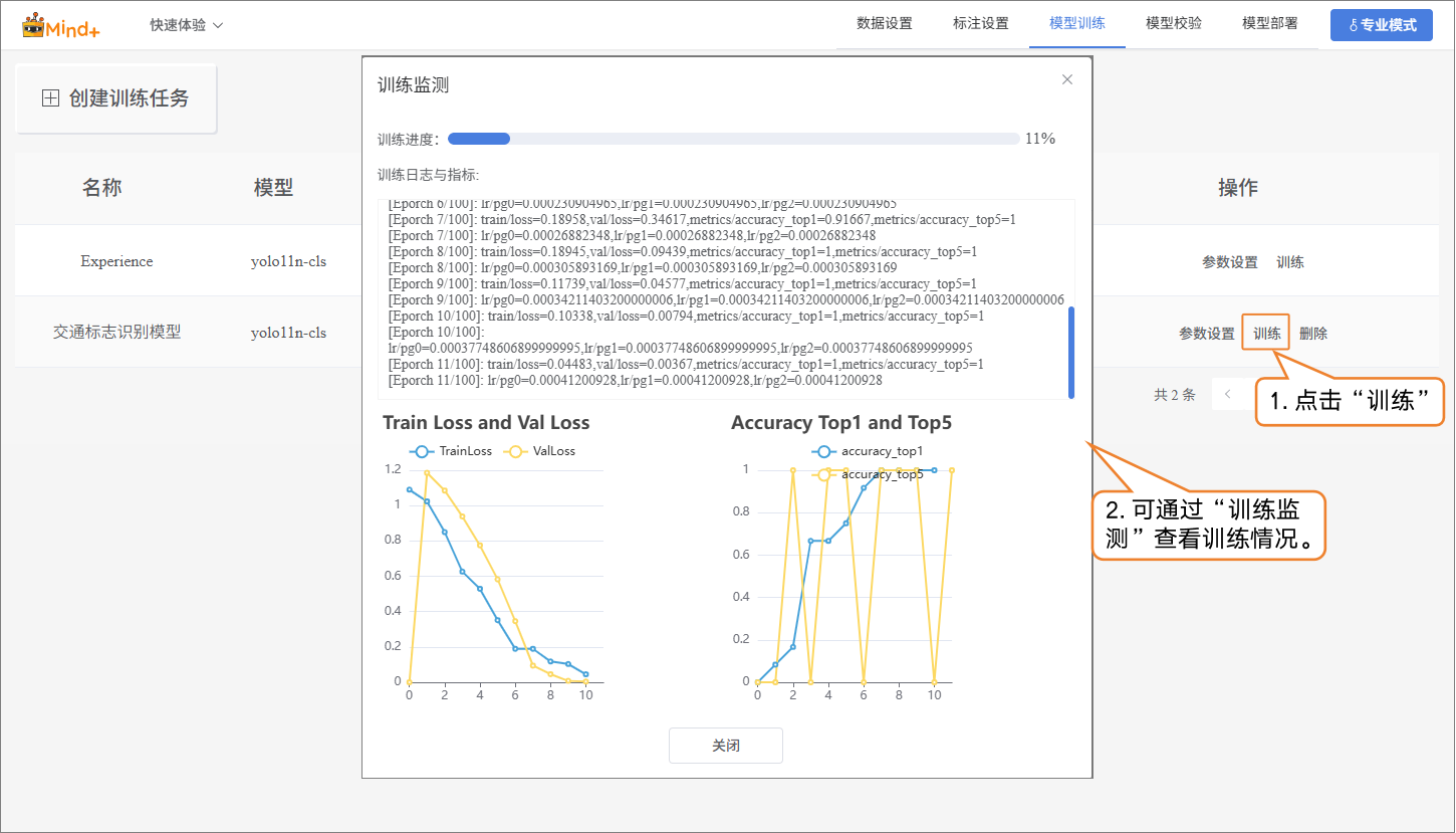 - 所有图片都标注完成后,切换到“模型训练”功能模块。