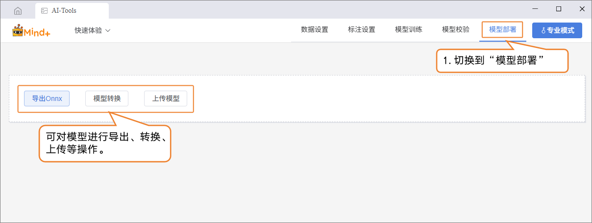 - 当模型测试结果符合需求时,切换到 “模型部署”功能模块: