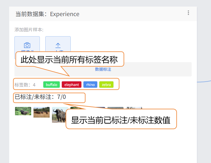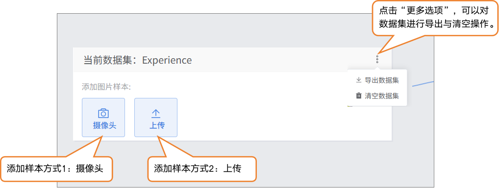 - 在当前数据集中,可以通过摄像头采集或本地上传两种方式添加图片样本。