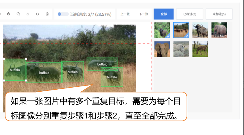- 如果一张图片中有多个重复目标,需要为每个目标图像分别重复步骤1和步骤2,直至全部完成。