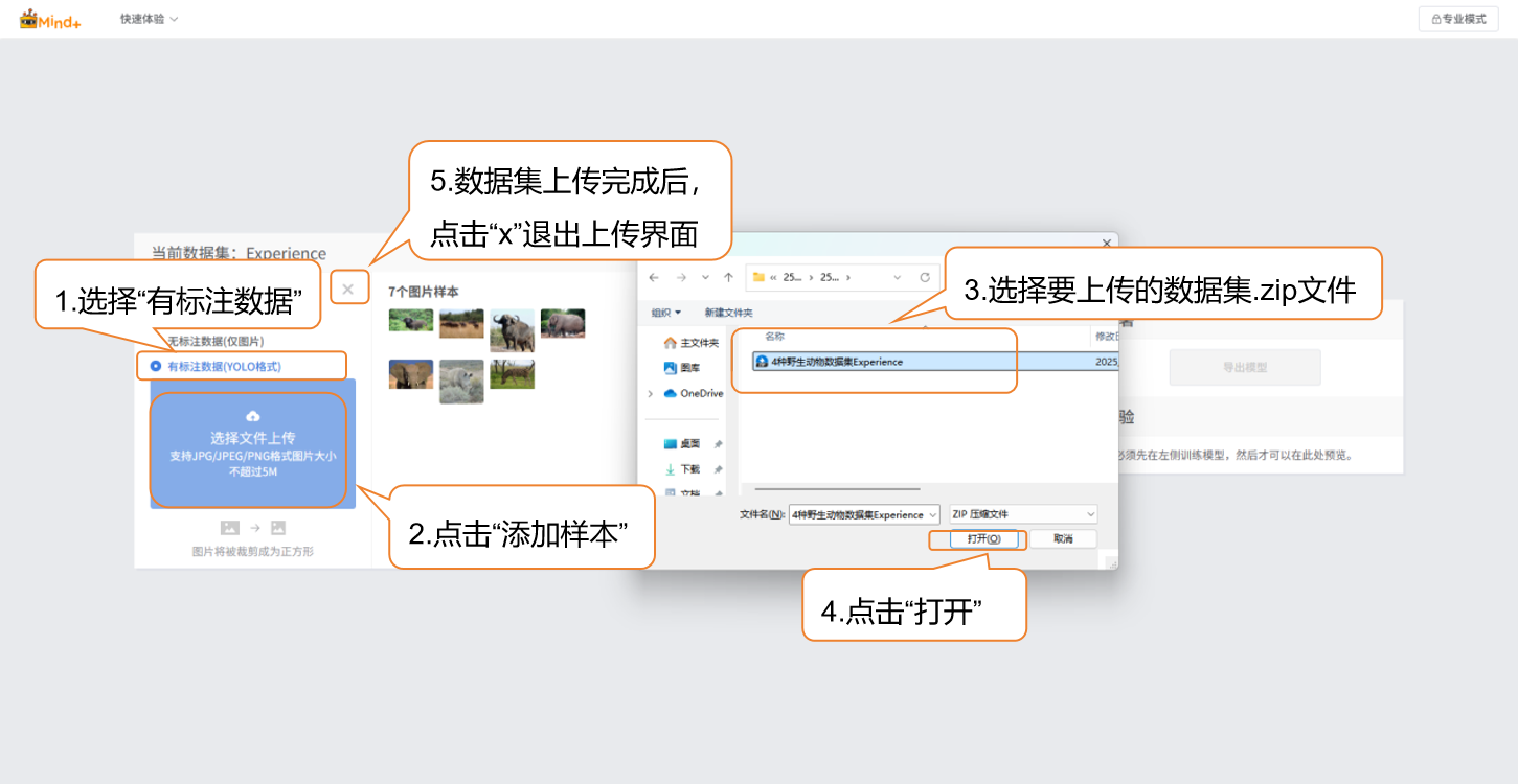 - 在本地文件夹中找到已准备好YOLO格式数据集文件(.zip),完成有标注数据的添加。