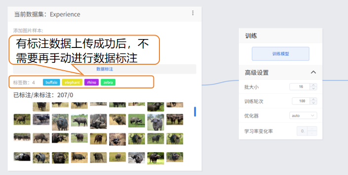 7. 有标注数据上传成功后,不需要在手动进行数据标注,直接开始步骤3的操作,开始训练模型。