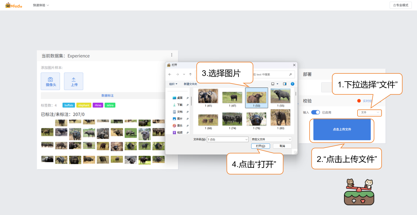 - 点击“上传文件”,选择一张测试图片并打开。