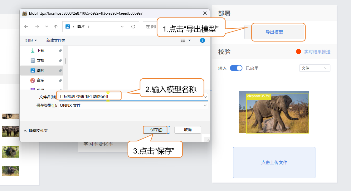 - 平台支持将模型导出为 ONNX 格式,便于在其他环境中使用或进行二次开发。