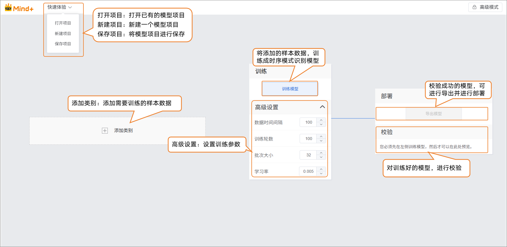 - 项目创建成功后,会跳转到新的时序模式识别快速体验界面。
