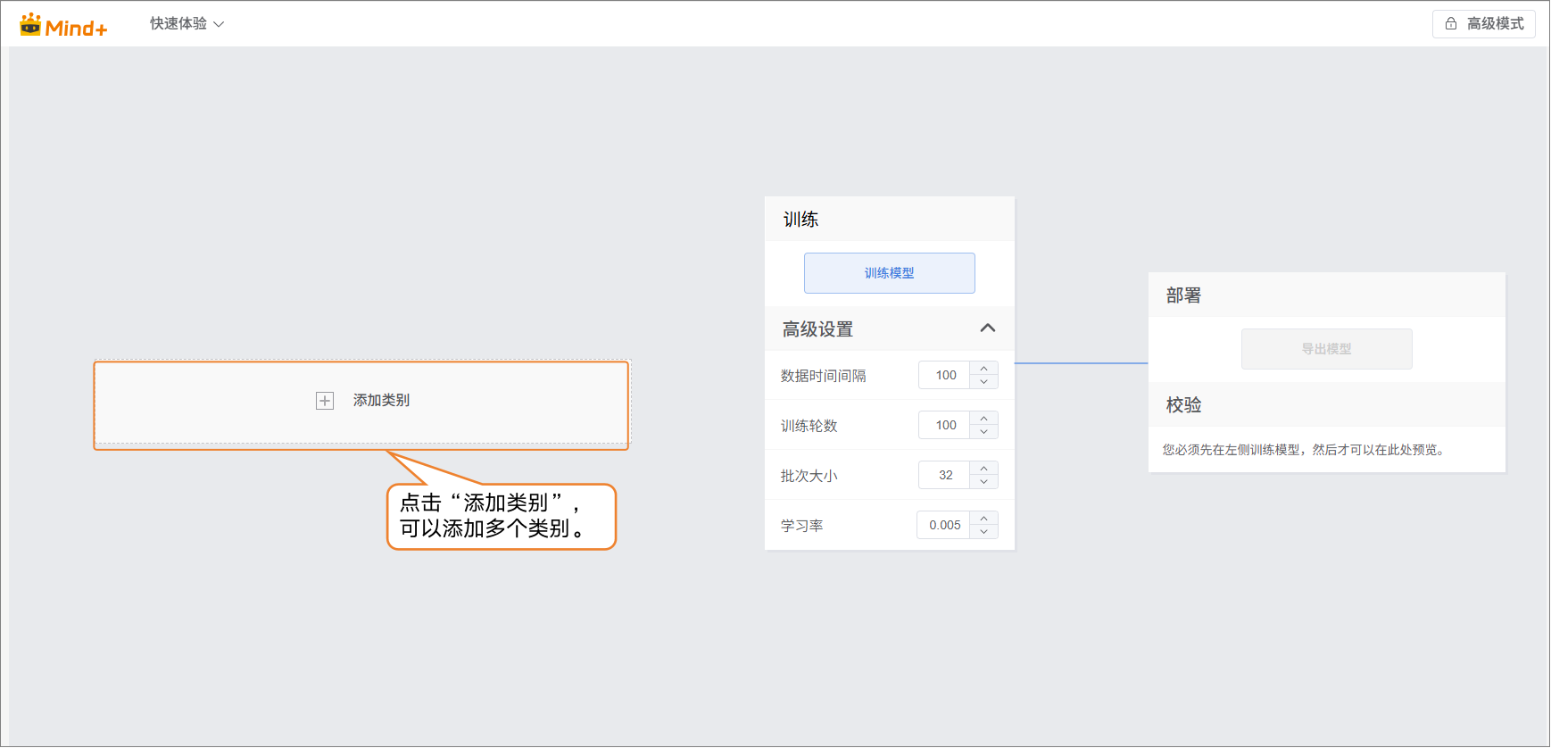 - 点击 “添加类别” 按钮,为图像分类任务创建所需类别。用户可以根据项目需求,添加多个类别,用于后续数据采集与模型训练。