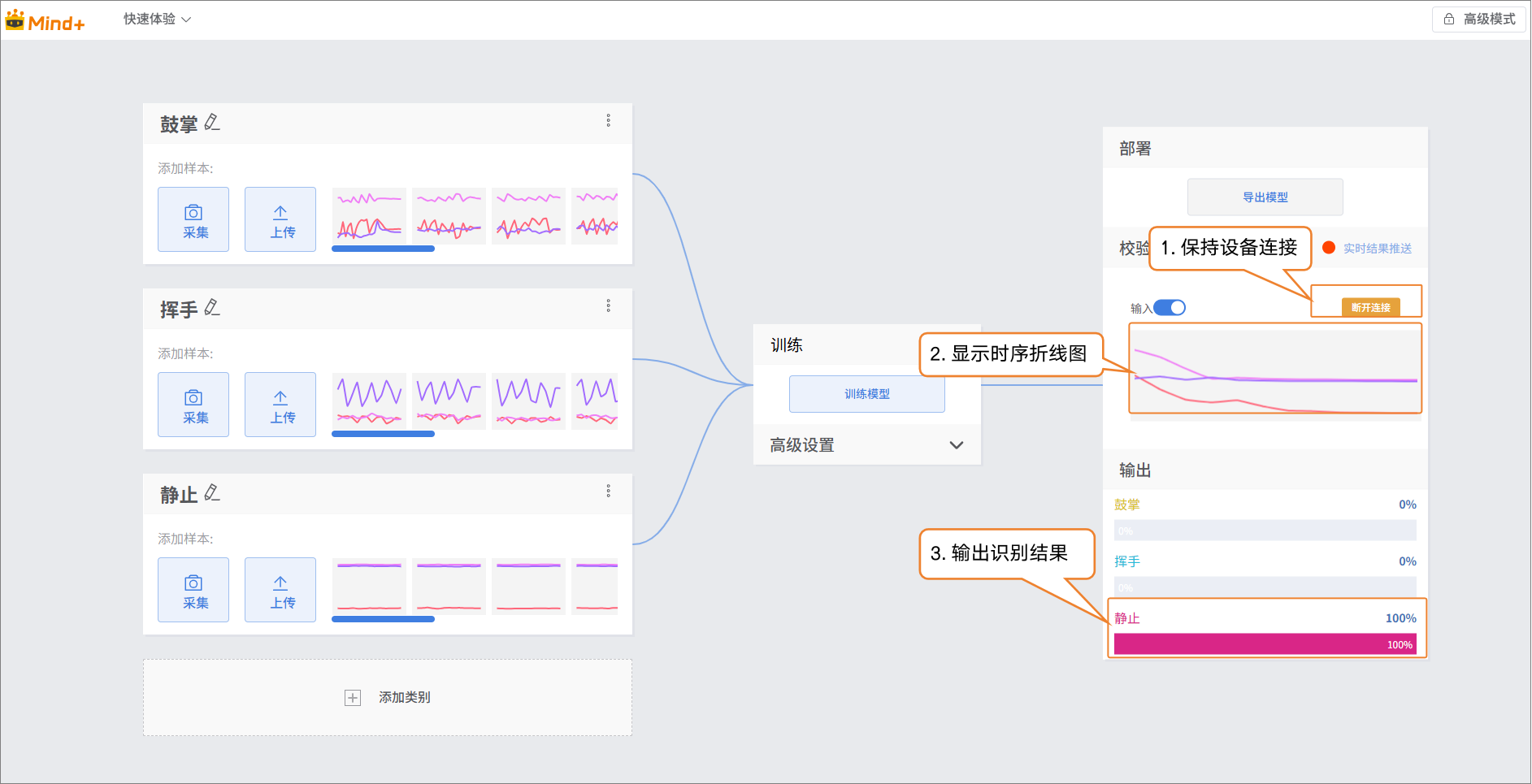 接下来,你可以选择上面任意一种数据添加方式,进行“静止”类别的样本数据添加。