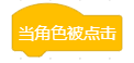 | 当点一下角色,开始按序执行下方每一行指令积木 |