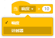 | 当侦测电脑麦克风响度或计时器大于10,开始按序执行下方每一行指令积木 |