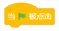 | 当绿旗被点击一下,开始按序执行下方每一行指令积木,常用作在后面紧跟需要初始化的操作。 |