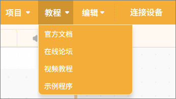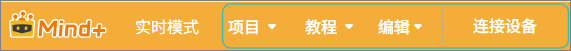 菜单栏提供了针对实时模式的项目操作,包含项目、教程、编辑、连接设备。