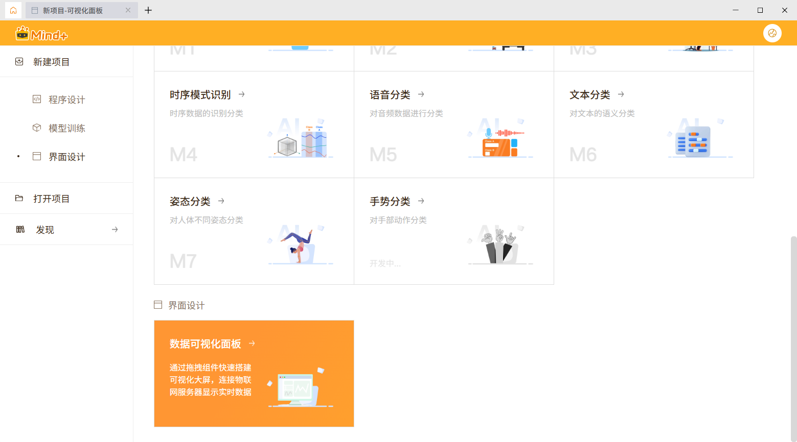 5.1 数据可视化面板¶ Mind+ V2.0.5版本开始将Mind+ V1.x中的数据可视化面板移植完成并作为独立应用(启动页>界面设计>数据可视化面板),功能与V1.x中相同。 使用教程请参考:点击跳转